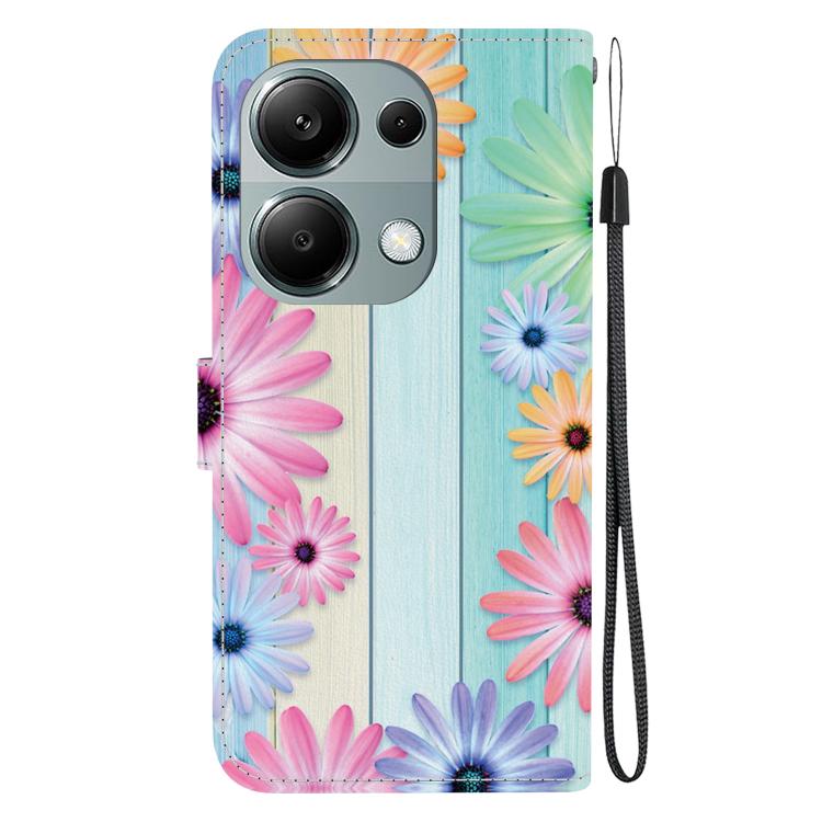 Funda de Cuero con Dibujo de Colores y Textura de Cristal para Redmi Note 13 Pro 4G / Poco M6 Pro (Girasoles)
