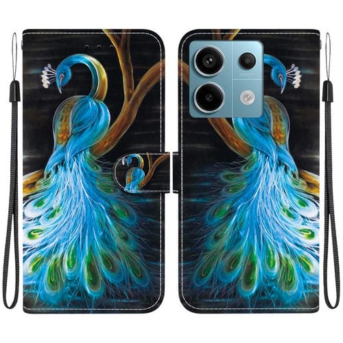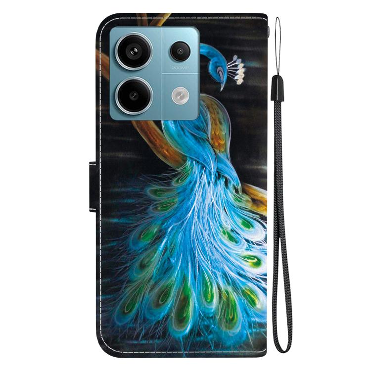 Funda de Cuero con Dibujo de Colores y Textura de Cristal para Redmi Note 13 Pro 5G (Pavo Real)