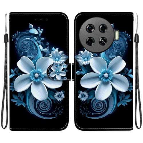 Funda de Cuero para Tecno Spark 20 Pro+ 4G con Dibujo de Colores y Textura de Cristal (Orquídea Negra)