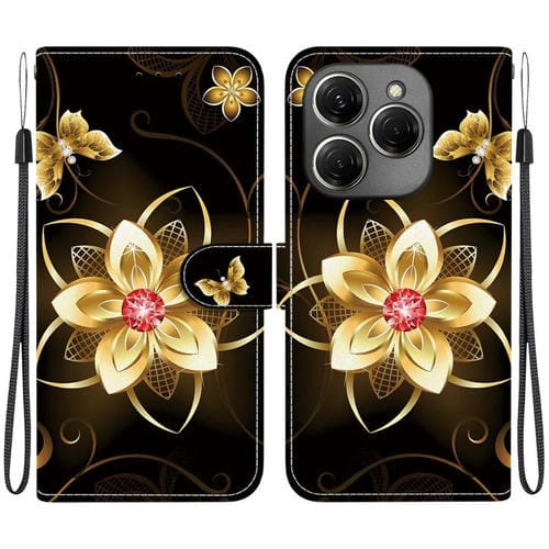 Funda de Cuero para Tecno Spark 20 Pro con Dibujo de Colores y Textura de Cristal (Flor Dorada)