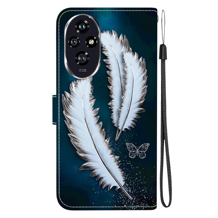 Funda de Cuero para Honor 200 5G con Dibujo de Colores y Textura de Cristal (Plumas de Mariposa Blancas)