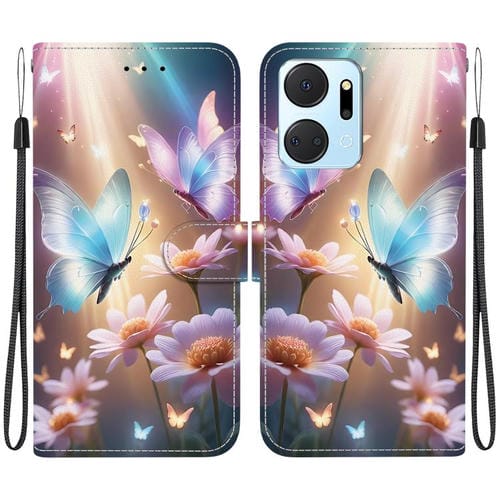 Funda de Cuero Honor X7A con Dibujo de Colores y Textura de Cristal (Mariposa, Amor y Flores)