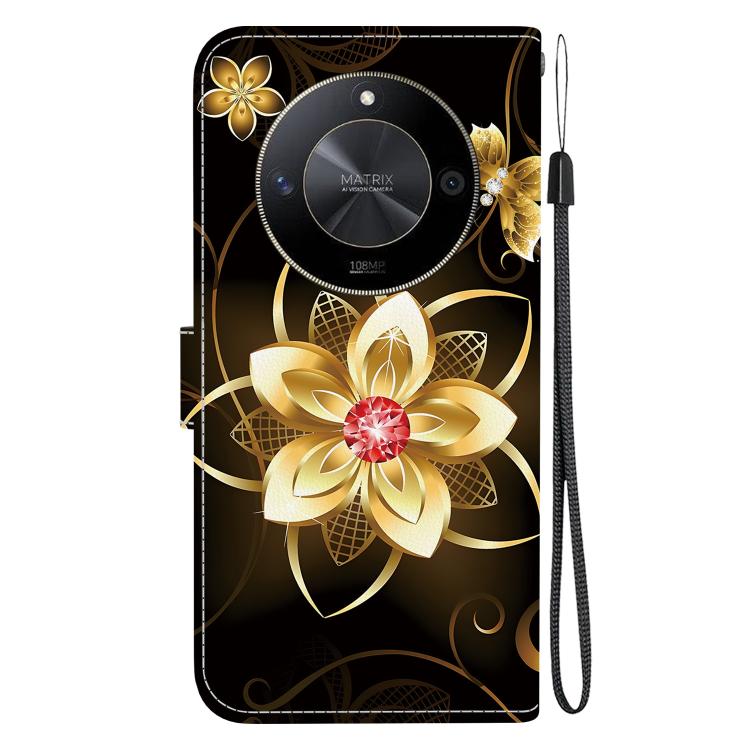 Funda de Cuero para Honor X9B/Magic6 Lite con Dibujo de Colores y Textura de Cristal (Flor Dorada)