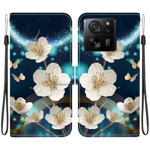 Funda de Cuero con Dibujo de Colores y Textura de Cristal para Xiaomi 13T/13T Pro (Magnolia)