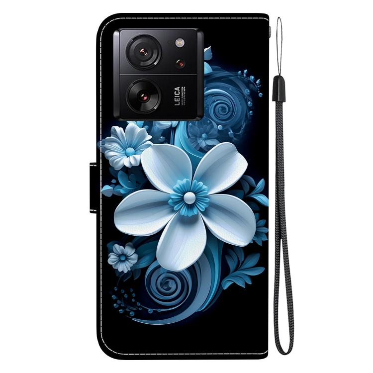 Funda de Cuero con Dibujo de Colores y Textura de Cristal para Xiaomi 13T/13T Pro (Orquídea Negra)
