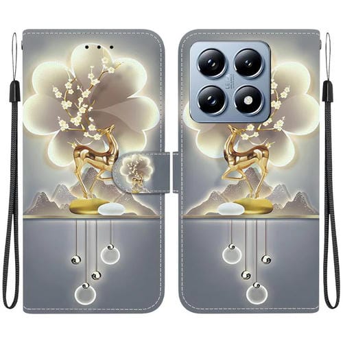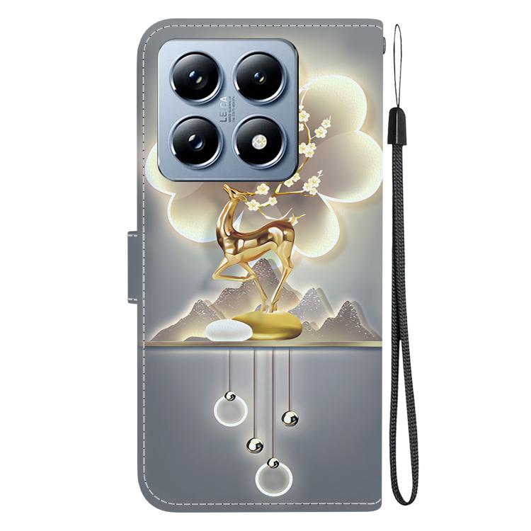 Funda de Cuero con Dibujo de Colores y Textura de Cristal para Xiaomi 14T Pro (Ciervo Sika)