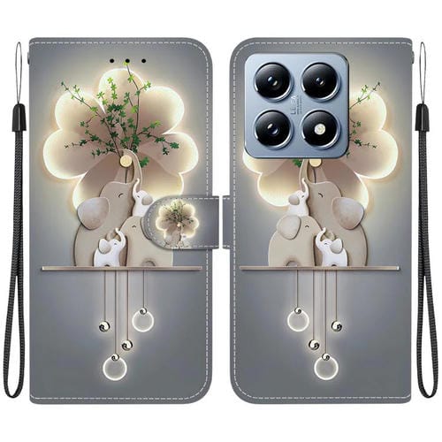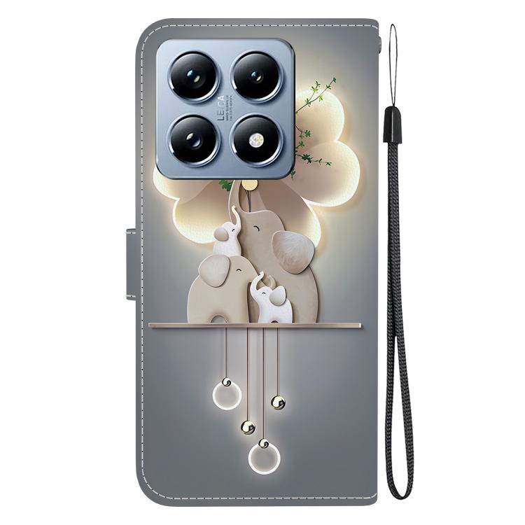Funda de Cuero con Dibujo de Colores y Textura de Cristal para Xiaomi 14T Pro (Elefantes)