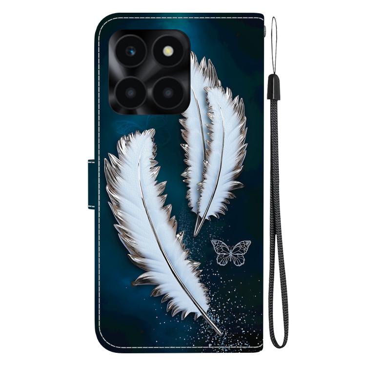 Funda de Cuero Honor X6A con Dibujo y Textura de Cristal (Plumas de Mariposa Blancas)