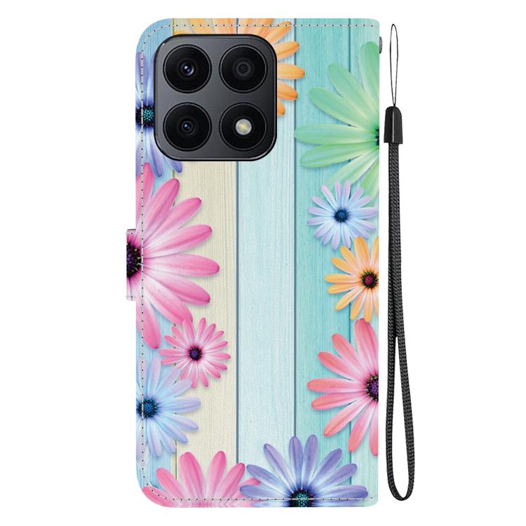 Funda de Cuero para Honor X8A con Dibujo de Girasoles y Textura de Cristal