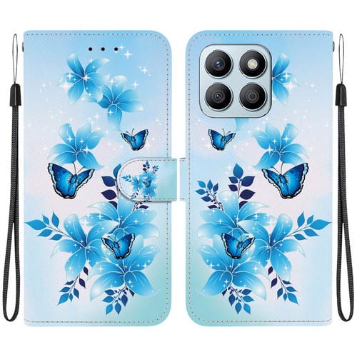 Funda de Cuero para Honor X8B con Dibujo y Textura de Cristal (Mariposas Azules)