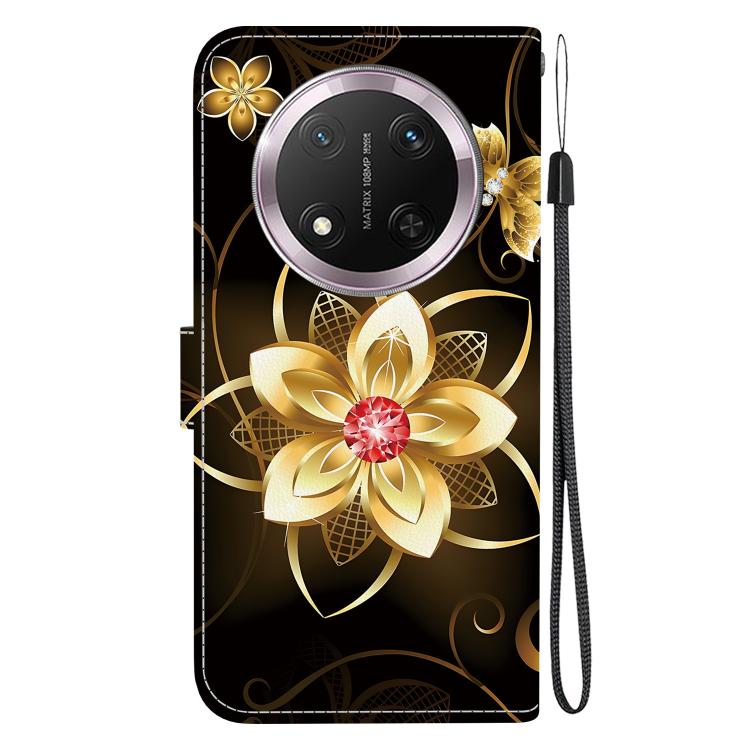 Funda de Cuero Honor X9C con Dibujo Color y Textura de Cristal (Flor Dorada)