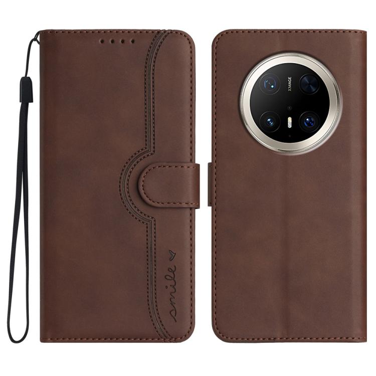 Funda de Cuero con Diseño de Corazón para Huawei Mate 70 Pro y Mate 70 Pro+ (Marrón)