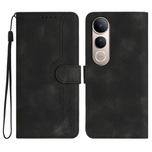 Funda de Cuero con Diseño de Corazón para Vivo V50 Lite 4G/5G (Negra)