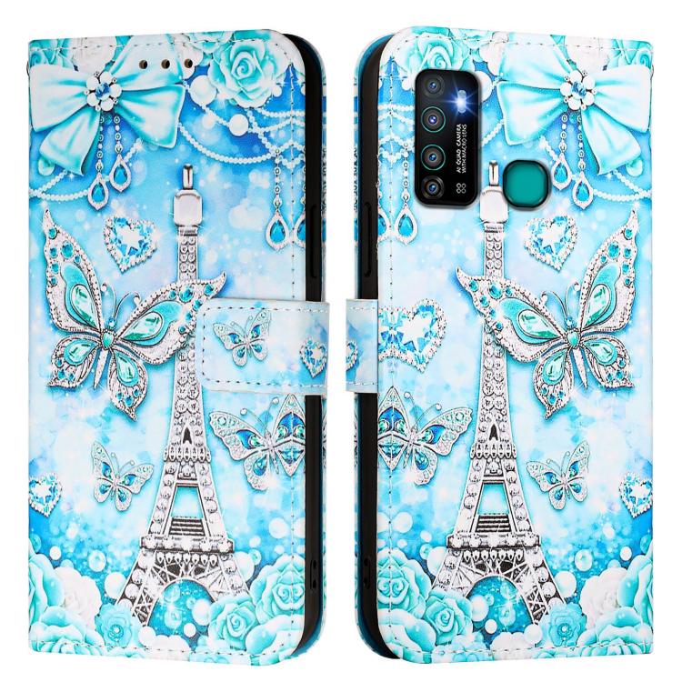 Funda de Cuero para Infinix Hot 9/Hot 9 Pro con Dibujo Mariposa en Forma de Torre (Liso)