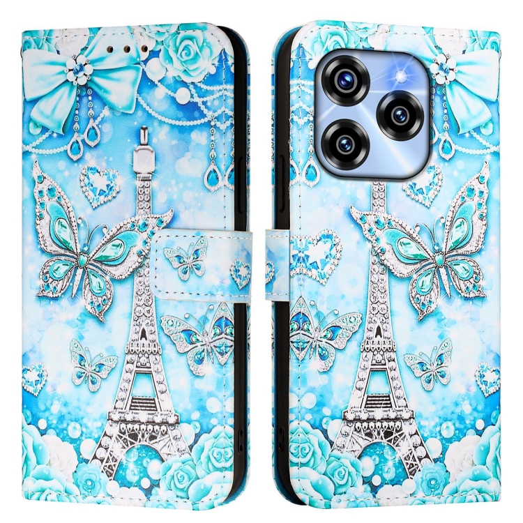 Funda de Cuero para Oukitel C50 con Diseño Mariposa en Forma de Torre (Liso)