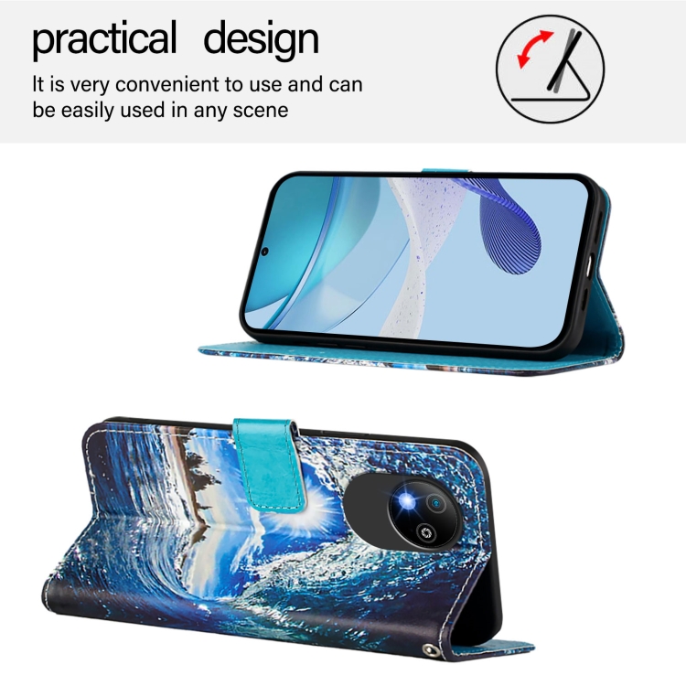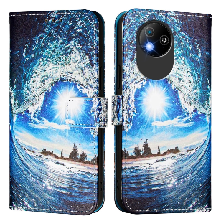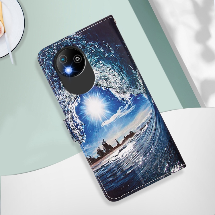 Funda de Cuero para ZTE Blade A35 Lite/A35 Core con Diseño de Dibujos y Tejido Liso (Ondas y Sol)