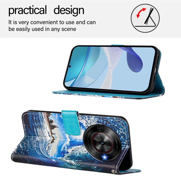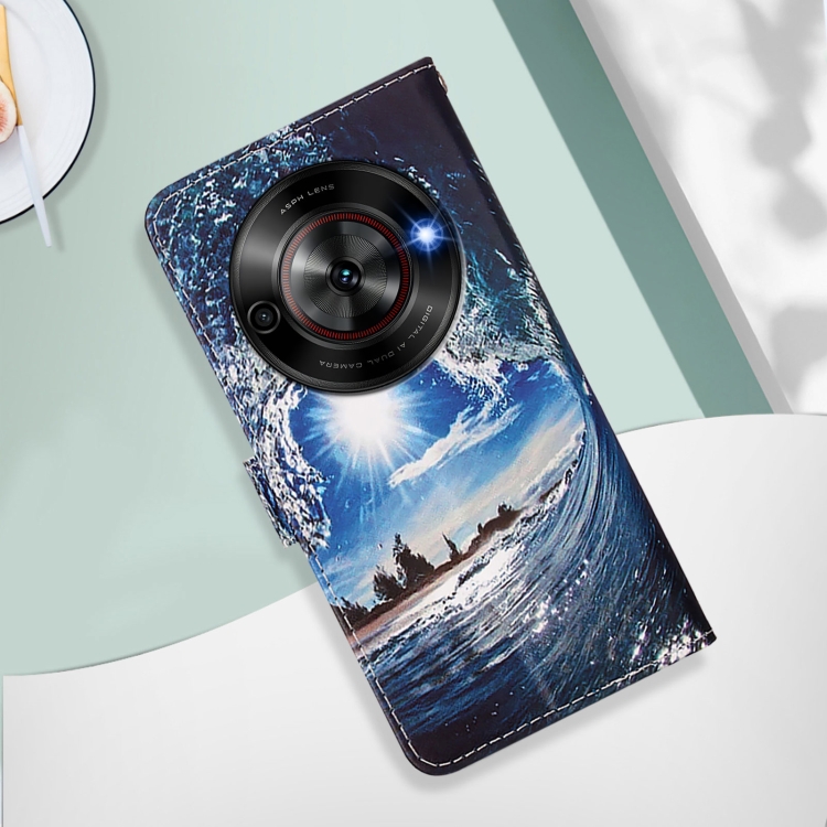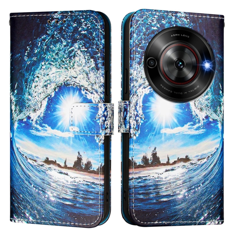 Funda de Cuero para ZTE Blade A75 5G Nubia Focus con Diseño Ondas y Sol