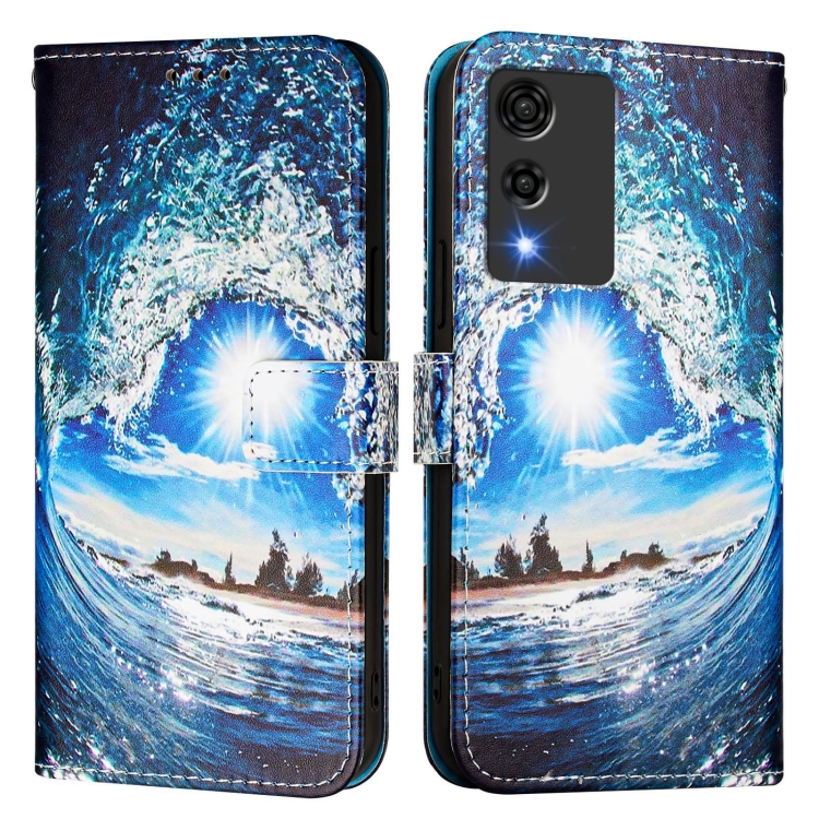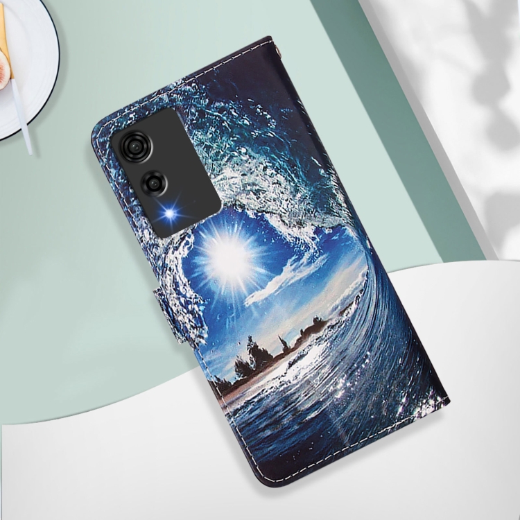 Funda de Cuero para Cubot A10 con Diseño de Dibujos Ondas y Sol (Color Liso)