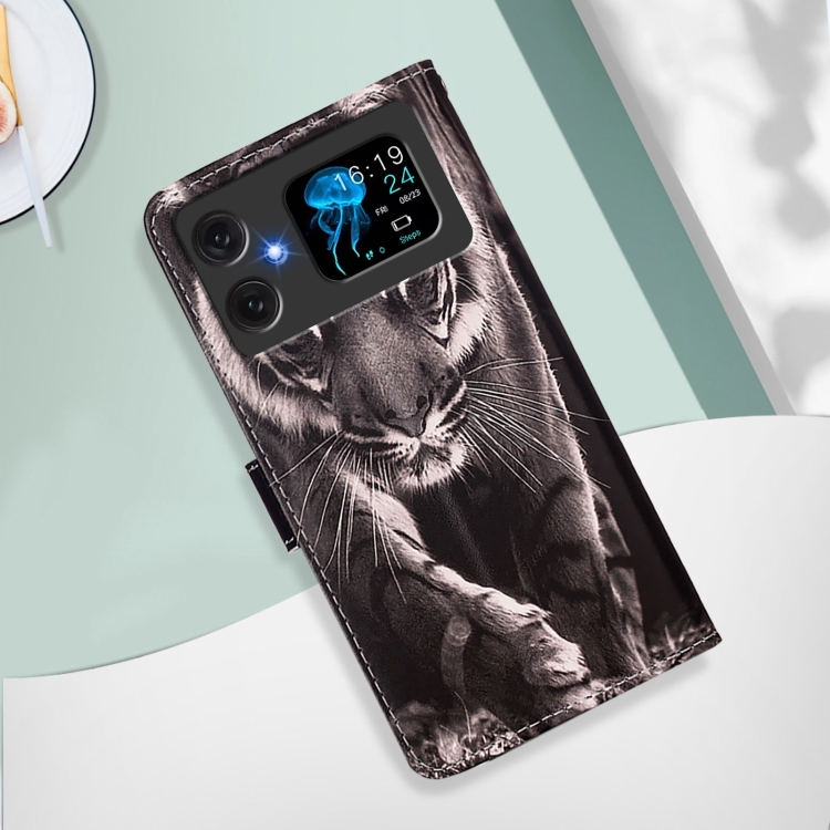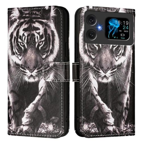 Funda de Cuero para Cubot A20 con Diseño de Dibujos Tigre Blanco y Negro