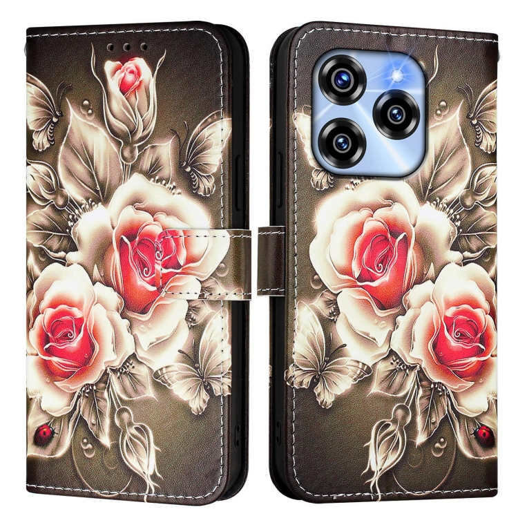 Funda de Cuero para Teléfono Oukitel C50 con Diseño de Dibujos (Rosas Sobre Negro)
