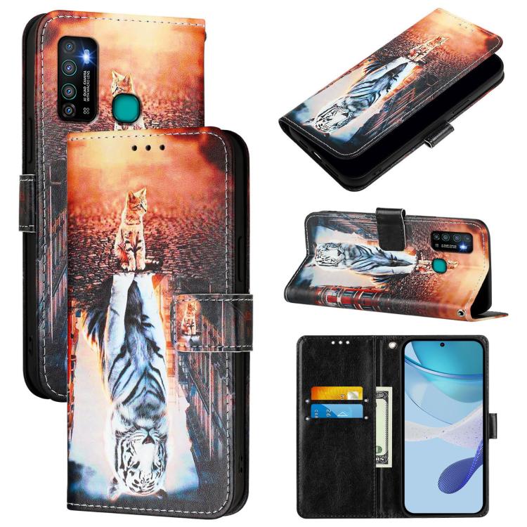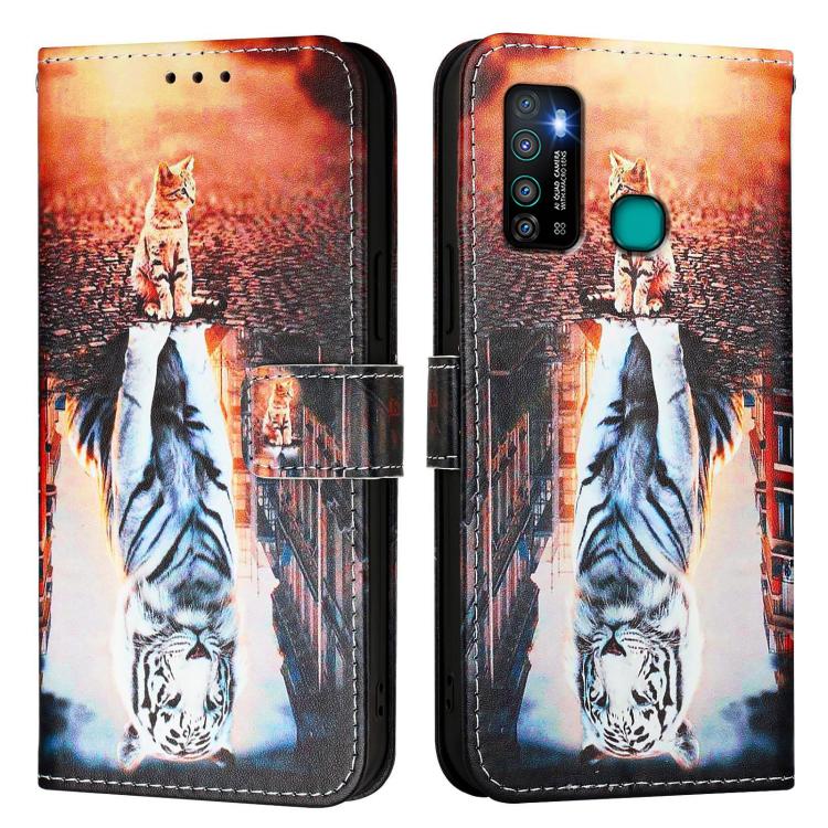 Funda de Cuero para Infinix Hot 9 y Hot 9 Pro con Diseño de Gatos y Tigres (Colores Lisos)