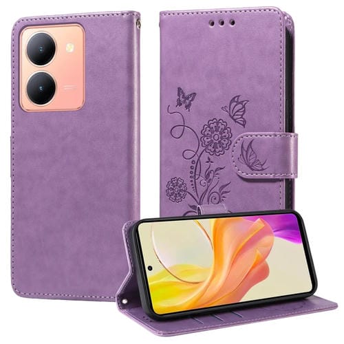 Funda de Cuero con Diseño de Mariposas y Flores En Relieve para Vivo Y36 4G/5G (Morado)