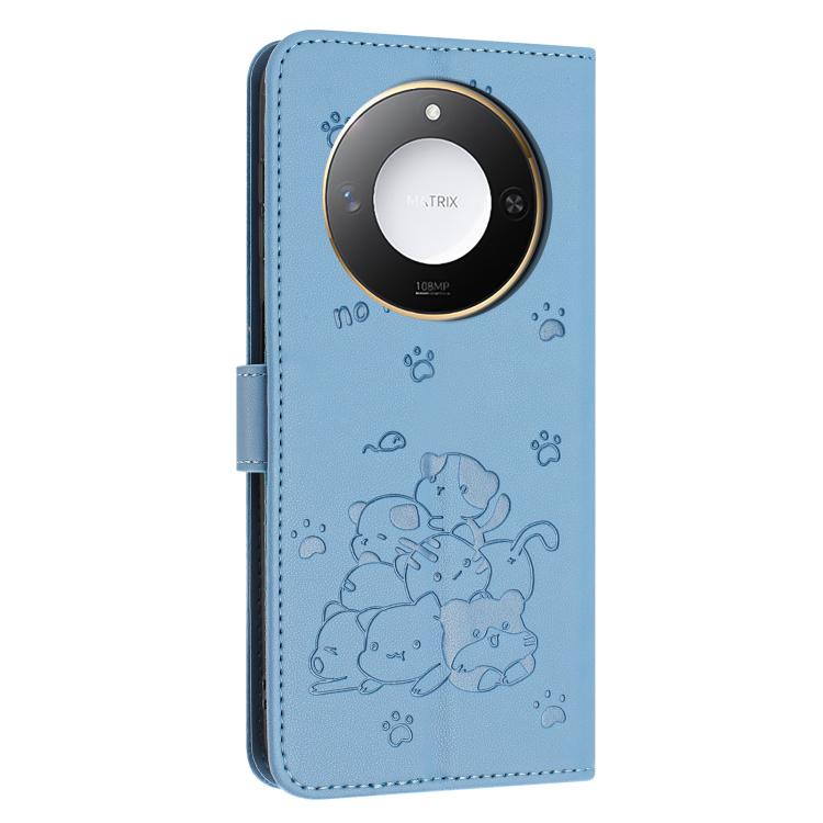 Funda de Cuero Honor X60/X9C con Diseño de Gatito en Relieve y Cordón (Azul)