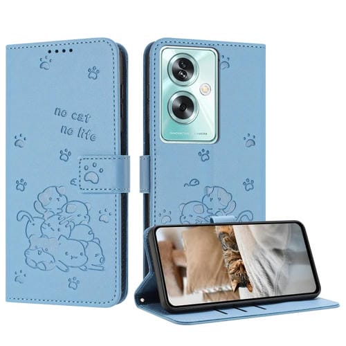 Funda de Cuero con Estampado de Gatito y Cordón para Oppo A79 5G (Azul)