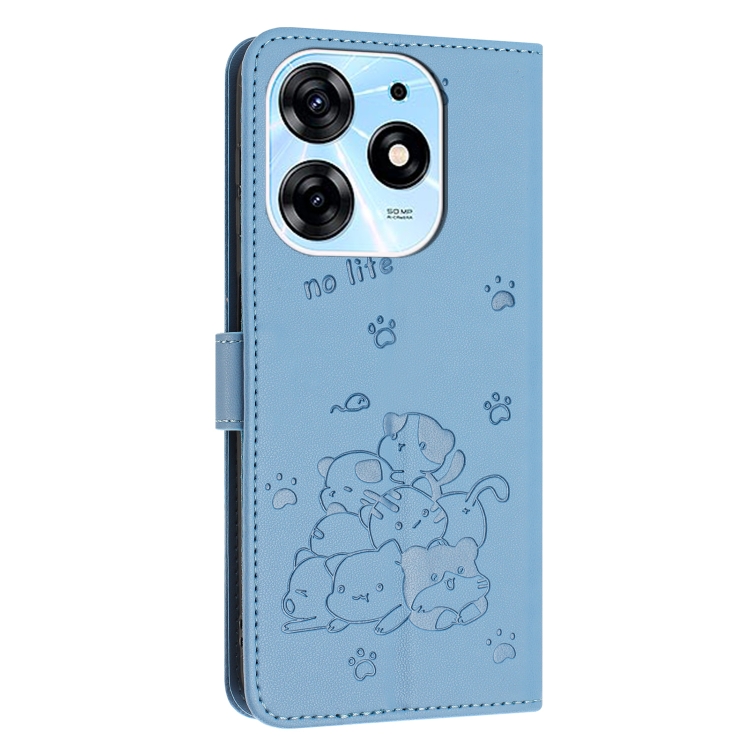 Funda Cuero Tecno Spark 10 Pro/K17 4G Diseño Gatito En Relieve con Cordón (Azul)