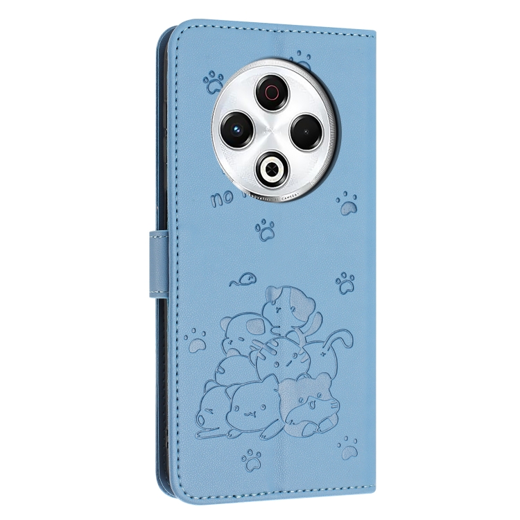 Funda de Cuero para Tecno Spark 30 4G con Diseño de Gatito En Relieve y Cordón (Azul)