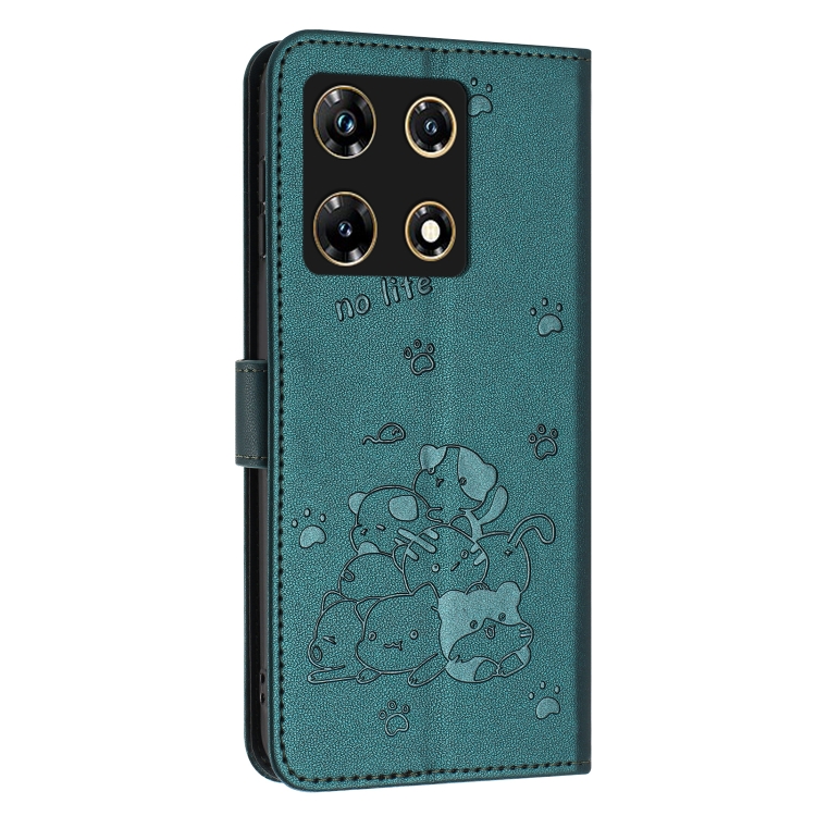 Funda de Cuero Infinix Note 30 Pro con Diseño de Gatito en Relieve y Cordón (Verde Oscuro)