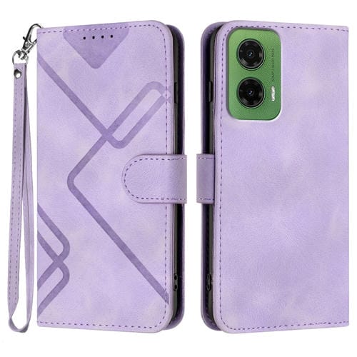Funda de Cuero para Motorola Moto G35 con Diseño de Líneas y Tacto Suave (Morado Claro)