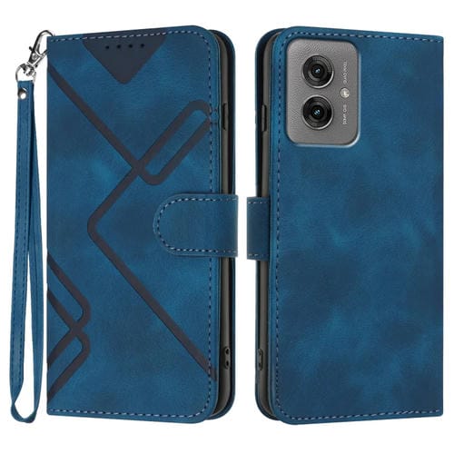 Funda de Cuero Motorola Moto G55 con Diseño de Líneas y Tacto Suave (Azul Real)
