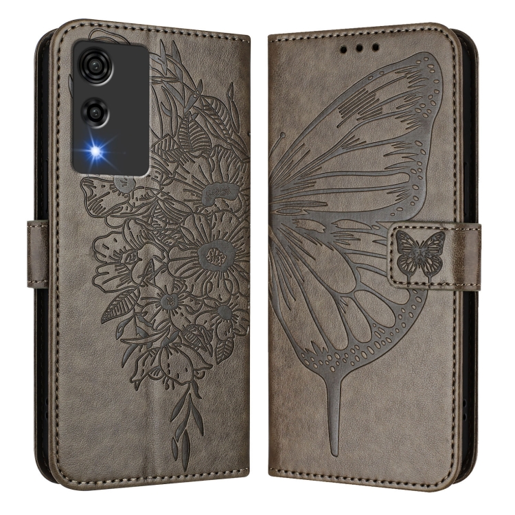 Funda de Cuero Cubot A10 Diseño Mariposa En Relieve (Gris)
