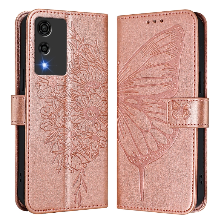 Funda de Cuero para Cubot A10 con Diseño de Mariposa en Relieve (Oro Rosa)