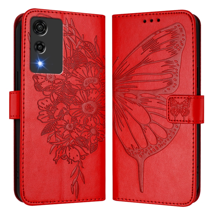 Funda de Cuero para Cubot A10 con Diseño de Mariposa En Relieve (Roja)
