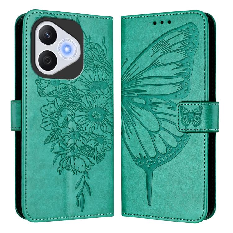Funda de Cuero para Honor 400 Lite con Diseño de Mariposa en Relieve (Verde)