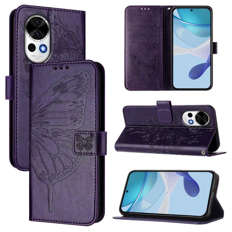 Funda de Cuero para Huawei Nova 13 y Nova 12 con Diseño de Mariposa en Relieve (Morado Oscuro)