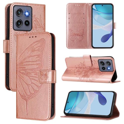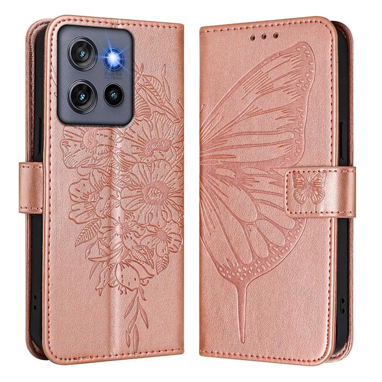 Funda de Cuero Motorola Moto G Stylus 5G 2025 con Diseño de Mariposa en Relieve (Oro Rosa)