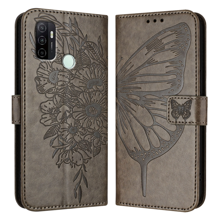 Funda de Cuero con Diseño de Mariposa En Relieve para Oppo A53S 4G/A33 2020 4G (Gris)