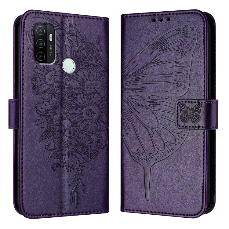 Funda de Cuero con Diseño de Mariposa En Relieve para Oppo A53S 4G/A33 2020 4G (Morado Oscuro)