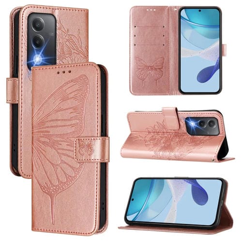 Funda de Piel con Diseño de Mariposa En Relieve para Oppo A80 5G (Oro Rosa)