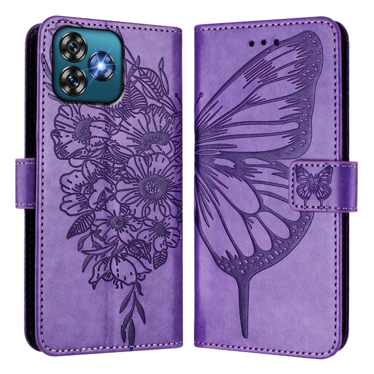 Funda de Cuero con Diseño de Mariposa en Relieve para Oukitel C53 (Morado)