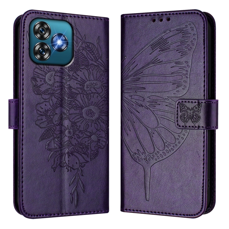 Funda de Cuero con Mariposa en Relieve para Oukitel C53 (Morado Oscuro)