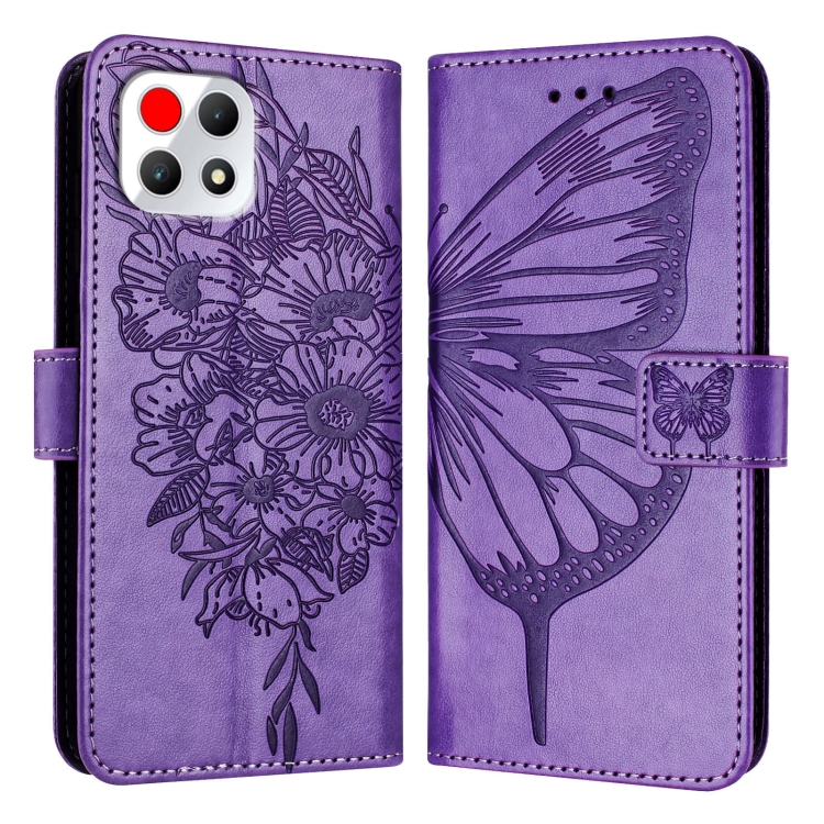 Funda de Cuero para T-Mobile Revvl 7 5G con Diseño de Mariposa En Relieve (Morado Claro)