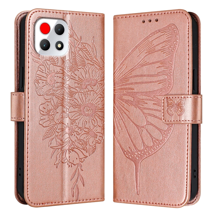 Funda de Cuero para T-Mobile Revvl 7 5G con Diseño de Mariposa en Relieve (Oro Rosa)
