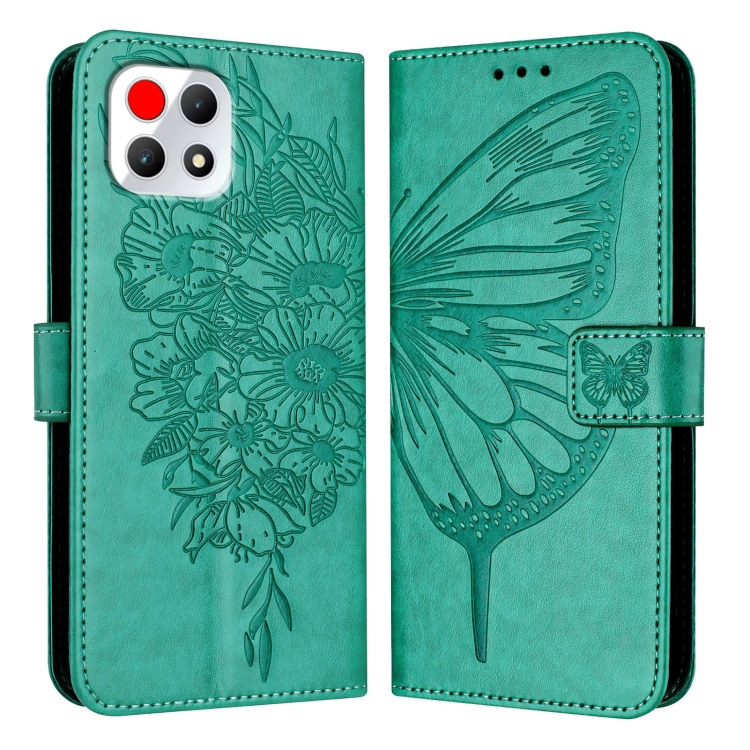 Funda de Cuero para T-Mobile Revvl 7 5G con Diseño de Mariposa en Relieve (Verde)