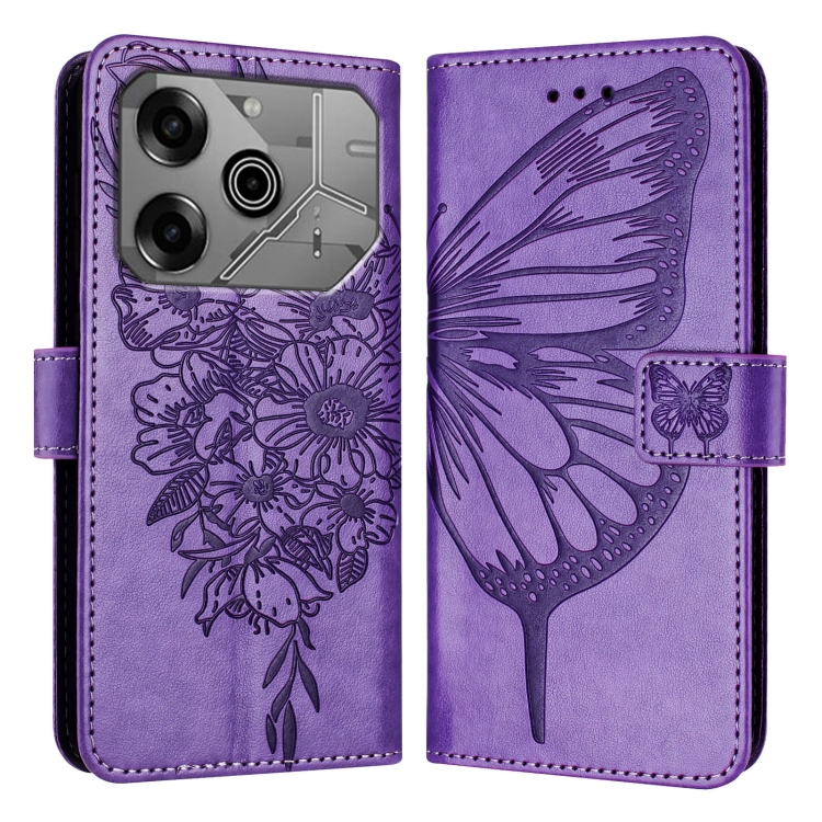 Funda de Cuero para Tecno Pova 6 Neo con Diseño de Mariposa En Relieve (Morado Claro)