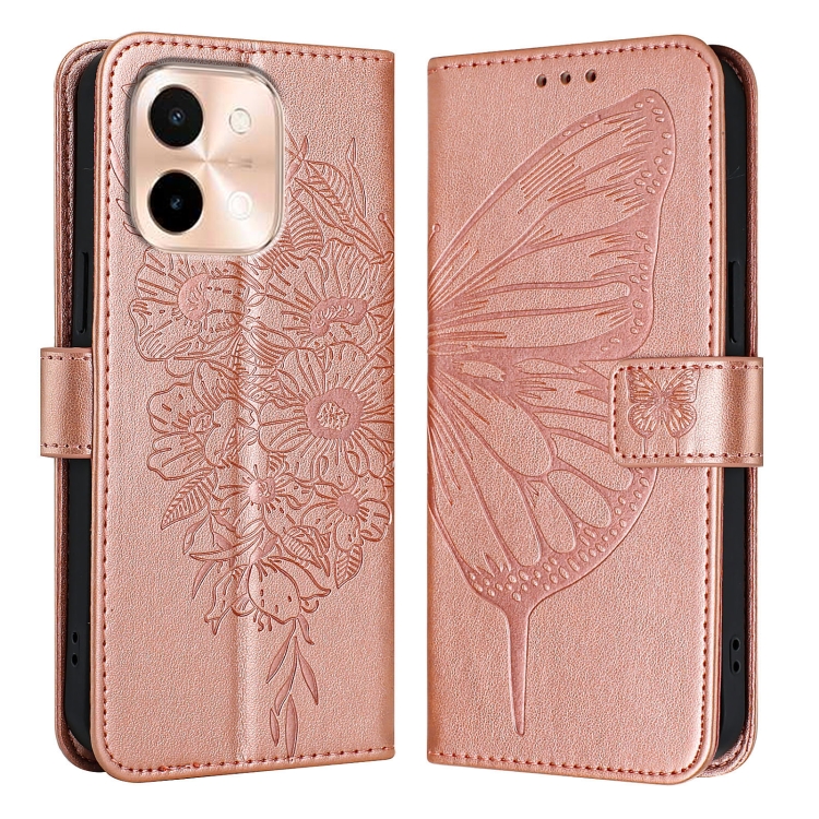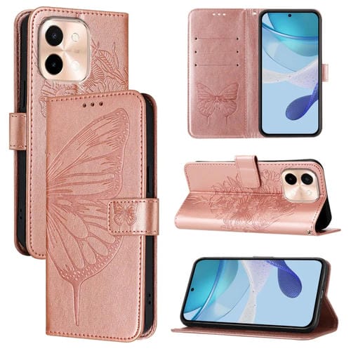Funda de Cuero con Diseño de Mariposa En Relieve para Vivo Y28 4G (Oro Rosa)