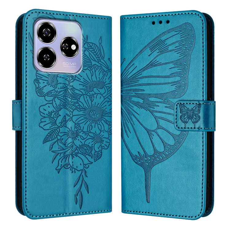 Funda de Cuero para ZTE Blade V60/Axon 60 4G con Diseño de Mariposa en Relieve (Azul)